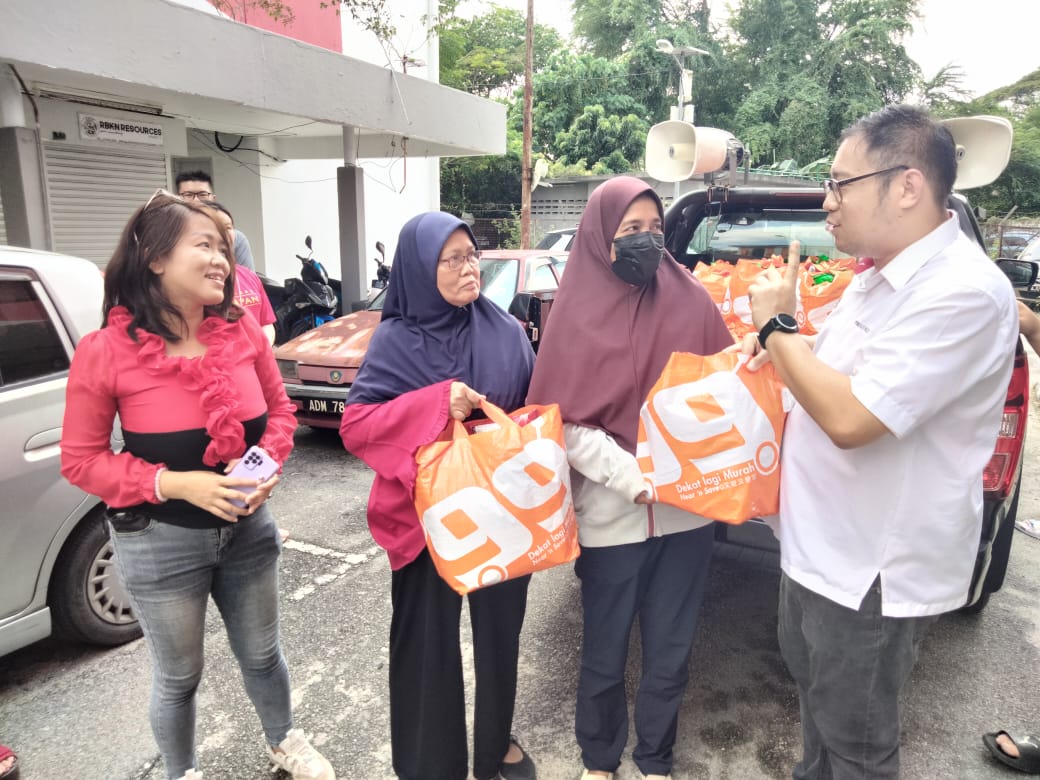 Sebanyak 30 pek makanan bernilai RM100 setiap satu disumbangkan kepada penduduk yang kurang berkemampuan di kawasan berkenaan.