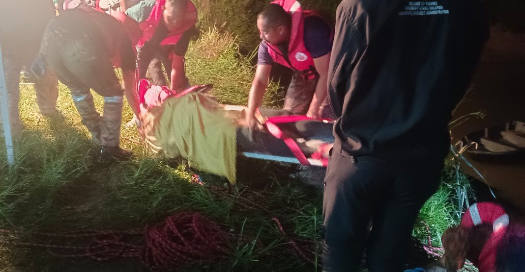 “Anggota bertindak menaikkan mayat mangsa lemas itu menggunakan bucket stretcher, tali webbing dan tali menyelamat.
