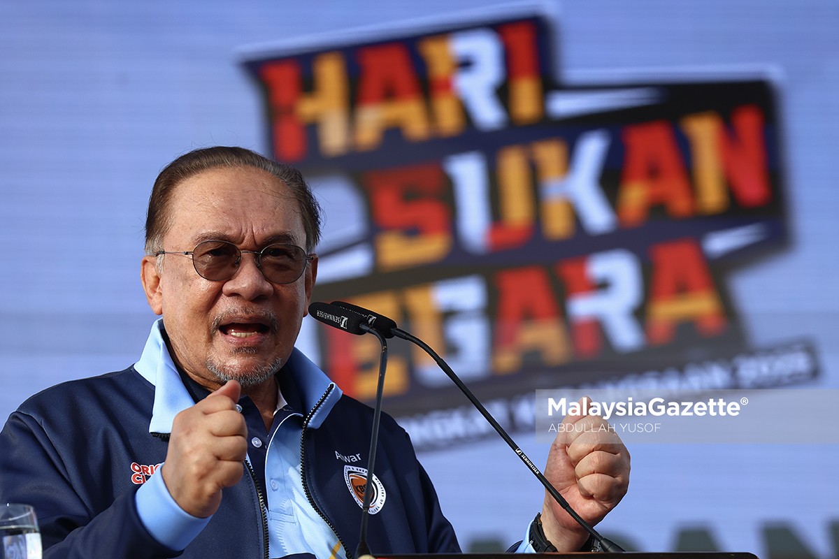 Anwar Ibrahim pembangunan sukan negara pembangunan sukan Malaysia, Hari Sukan Negara 2025, kerajaan perkukuh sektor sukan, Anwar Ibrahim sukan, Hannah Yeoh KBS