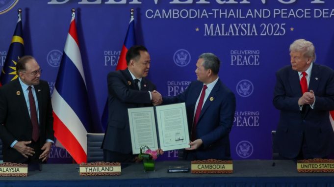Majlis perjanjian damai itu ditandatangani Perdana Menteri Thailand, Anutin Charnvirakul dan rakan sejawatnya dari Kemboja, Hun Manet di luar acara Sidang Kemuncak ASEAN ke-47 dan Sidang Kemuncak Berkaitan yang berlangsung di Pusat Konvensyen Kuala Lumpur (KLCC) di sini.