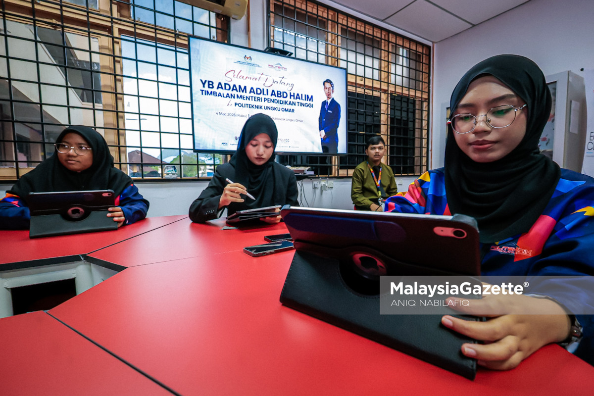 Timbalan Menteri Pendidikan Tinggi, Adam Adli Abd Halim ketika melakukan sesi walkabout pada Majlis Perasmian Apple Education Classroom di Politeknik Ungku Omar, Ipoh, pada Rabu. Foto ANIQ NABILAFIQ ANUAR, 04 MAC 2026.