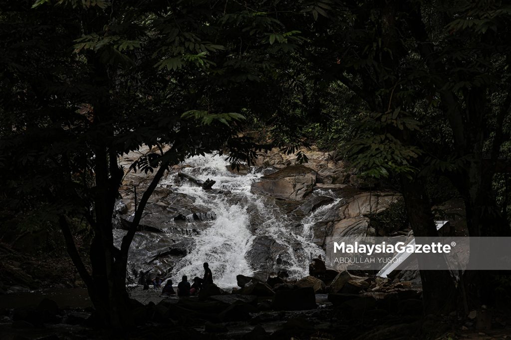 Pengunjung tidak melepaskan peluang bermandi-manda menikmati kesejukan air terjun Lata Kinjang di Taman Eko Rimba Lata Kinjang, Tapah. Foto ABDULLAH YUSOF.