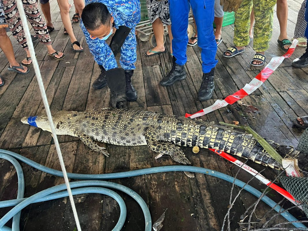 BAGAN DATUK – Seekor buaya betina seberat 25 kilogram (kg) ditemukan tersangkut pada jaring nelayan di Bagan Pasir, di sini pada Rabu.