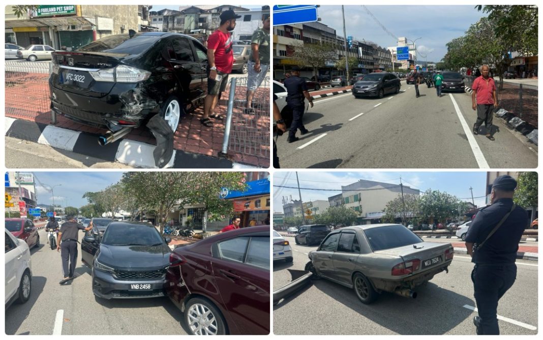 “Semasa usaha menahan lelaki itu dijalankan, kereta tersebut terbabit kemalangan jalan raya melibatkan lima kenderaan awam di Jalan Dato’ Wong Ah Jang dan suspek bertindak melarikan diri dengan meninggalkan kereta di tengah jalan.
