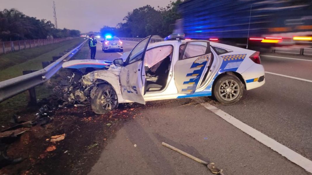 Terdahulu, dua anggota polis masing-masing berpangkat koperal dan lans koperal mengalami luka di kepala serta sakit di beberapa bahagian badan termasuk dada dan tengkuk selepas kereta peronda jenis Honda Civic 1.8 (SPANCO) dinaiki hilang kawalan.