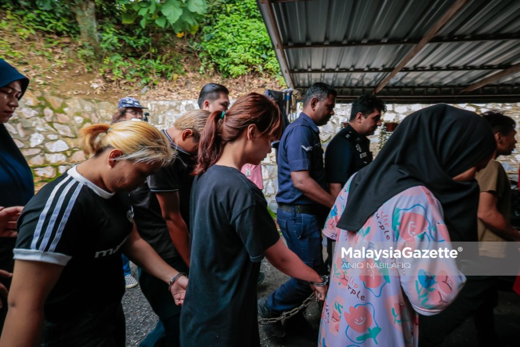 Empat wanita yang terdiri daripada dua beradik dan rakan perempuan yang merupakan ahli kumpulan Ismail Gampang dituduh di Mahkamah Majistret Parit atas kesalahan melupuskan barang curi. Foto ANIQ NABILAFIQ ANUAR 21 NOVEMBER 2025.