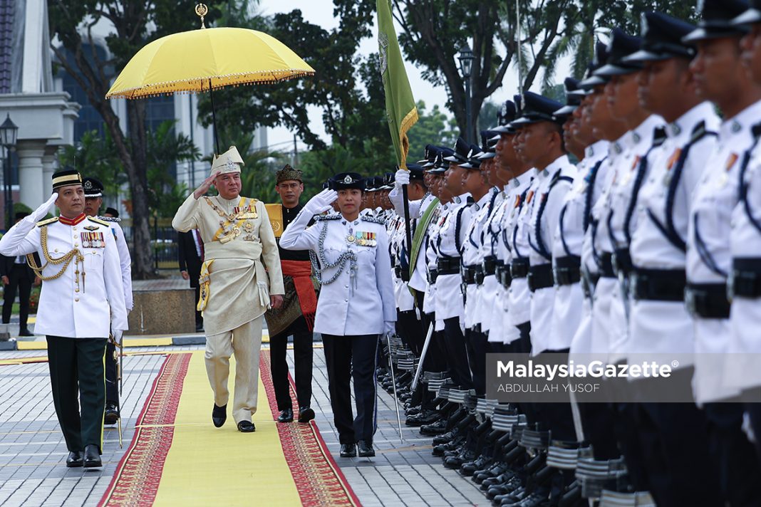 Sultan Perak, Sultan Nazrin Muizzuddin Shah berkenan memeriksa Kawalan Kehormatan Utama sempena perasmian Istiadat Pembukaan Rasmi Tahun Keempat, Dewan Negeri Yang Kelima Belas Perak Darul Ridzuan di Bangunan Perak Darul Ridzuan, Ipoh. Foto ABDULLAH YUSOF 14 APRIL 2026.