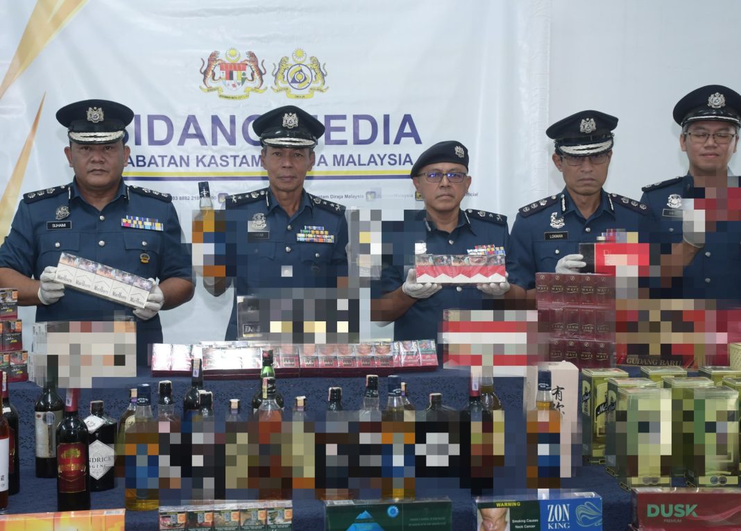 “Nilai dagangan dianggarkan 387,788 batang pelbagai jenama rokok membabitkan duti sebanyak RM 318,406.33 dan 2,273.53 liter pelbagai jenama minuman keras berduti sebanyak RM91,601.95.