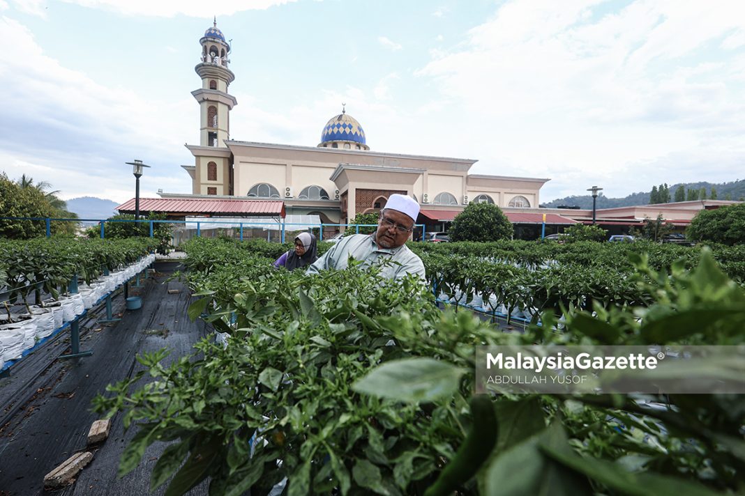 “Kawasan masjid dalam bentuk landskap ini kita tanam cili di bahagian depan, belakang dan kiri serta tanam pokok buah-buahan di sekelilingnya.