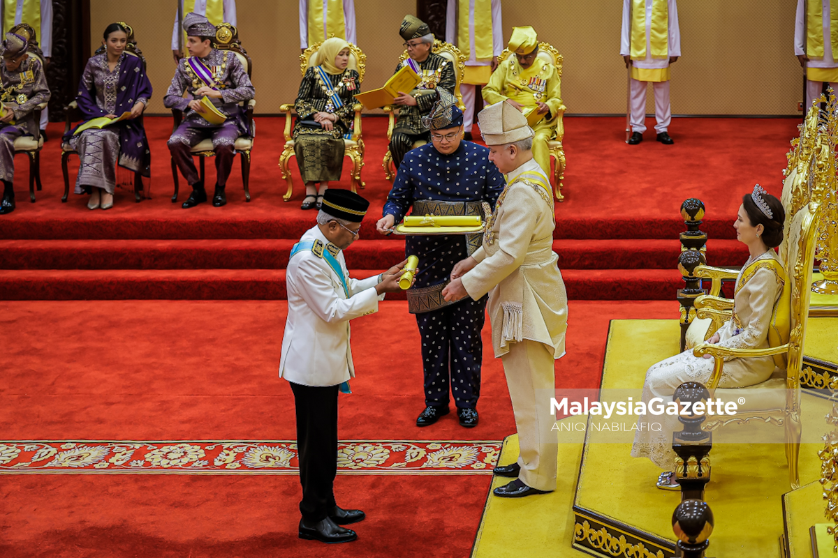 Sultan Perak, Sultan Nazrin Muizzuddin Shah berkenan mengurniakan Darjah Dato’ Seri Paduka Mahkota Perak (SPMP) kepada Speaker Dewan Undangan Negeri (DUN) Perak, Datuk Seri Mohamad Zahir Abdul Khalid sempena sambutan Ulang Tahun Hari Keputeraan Ke-68 baginda di Istana Iskandariah, Kuala Kangsar. Foto ANIQ NABILAFIQ ANUAR 09 NOVEMBER 2025.