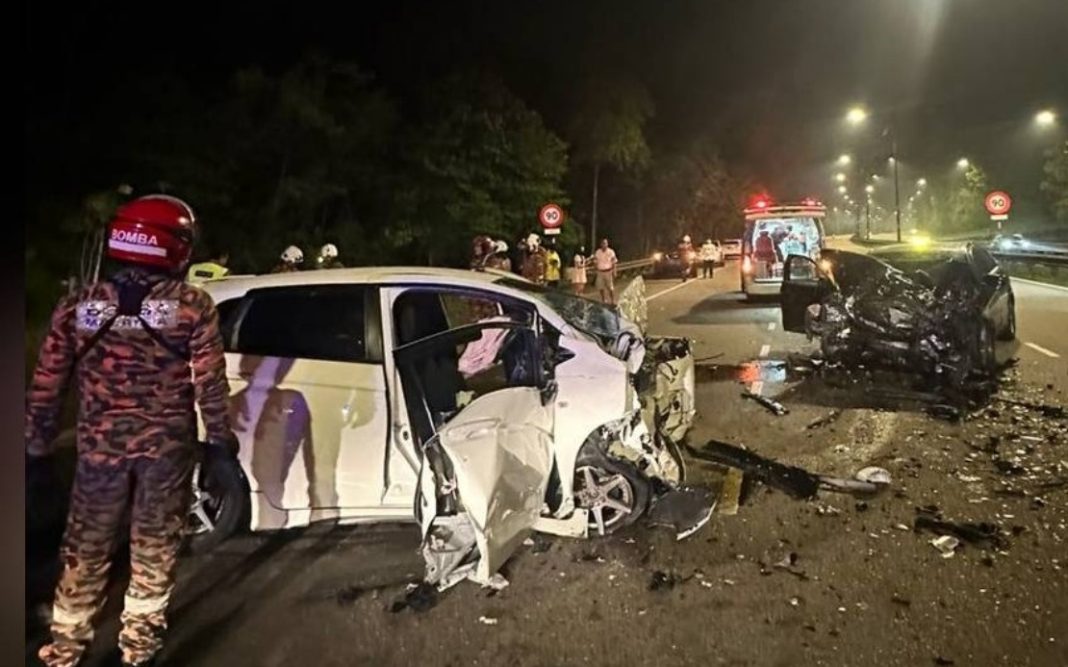 JOHOR BAHRU – Dua individu maut selepas kereta Honda Jazz yang dinaiki, dipercayai dirempuh sebuah kereta Mercedes yang dipandu secara melawan arus di Kilometer 6.4, Jalan Ismail Sultan, Iskandar Puteri, awal pagi tadi.