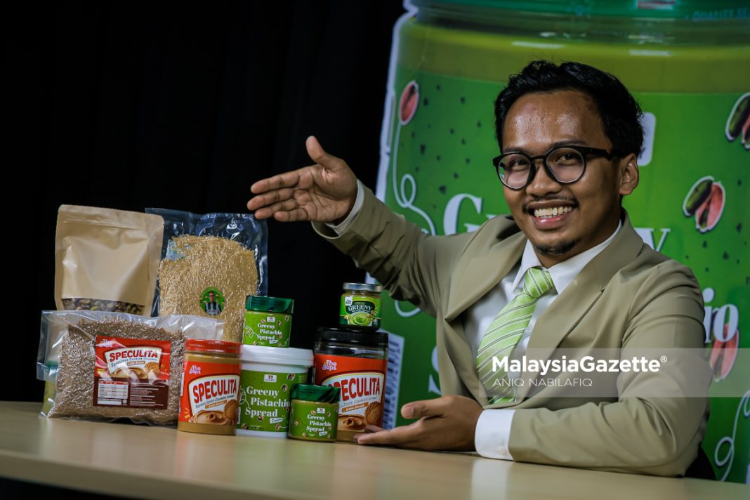 “Greeny Pistachio Spread ini kebetulan datang daripada idea pengusaha yogurt beku dari Kelantan, Froogurtz. Mereka guna biskut kami sebagai ‘topping‘ aiskrim dan minta kami hasilkan sapuan pistachio. Jadi kami R&D sendiri sampai dapat rasa dan tekstur yang diinginkan.
