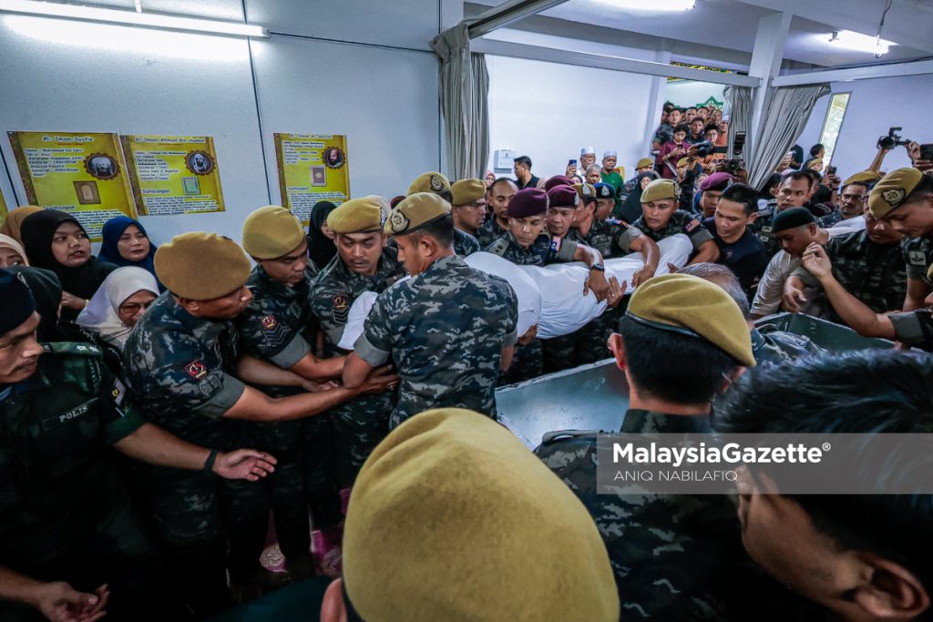 Terdahulu jenazah Khairil Azhar Selamat tiba di Pangkalan Latihan Pasukan Gerakan Udara (PLPGU), di sini kira-kira jam 3.20 menaiki pesawat Tentera Udara Diraja Malaysia (TUDM) jenis C130 dari Lapangan Terbang Tawau, Sabah.