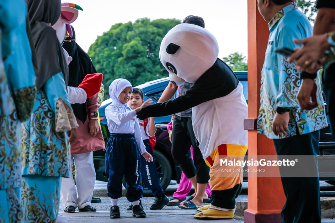Inisiatif maskot yang menyambut murid-murid ini dianjurkan oleh Persatuan Ibu Bapa dan Guru (PIBG) Sekolah Kebangsaan (SK) Tasek Damai bagi menaikkan semangat murid-murid selain mewujudkan suasana positif pada permulaan sesi persekolahan baharu. Foto ANIQ NABILAFIQ ANUAR, 12 JANUARI 2026.