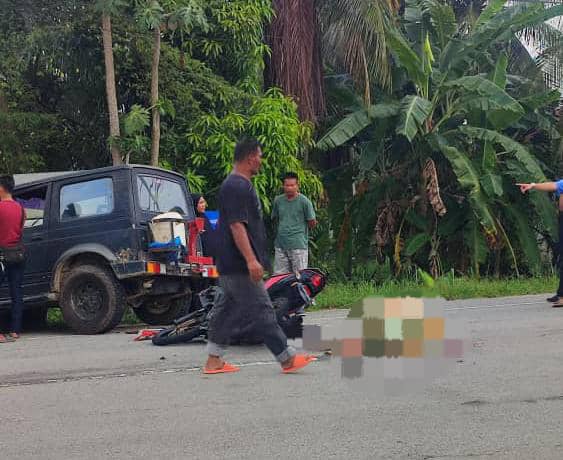 Mangsa Megat Azman Megat Yahaya, 40, meninggal dunia di lokasi selepas motosikal jenis Honda RS150 yang dinaikinya melanggar bahagian hadapan sebuah jip jenis Suzuki Jimny sekitar jam 5 petang Ahad.