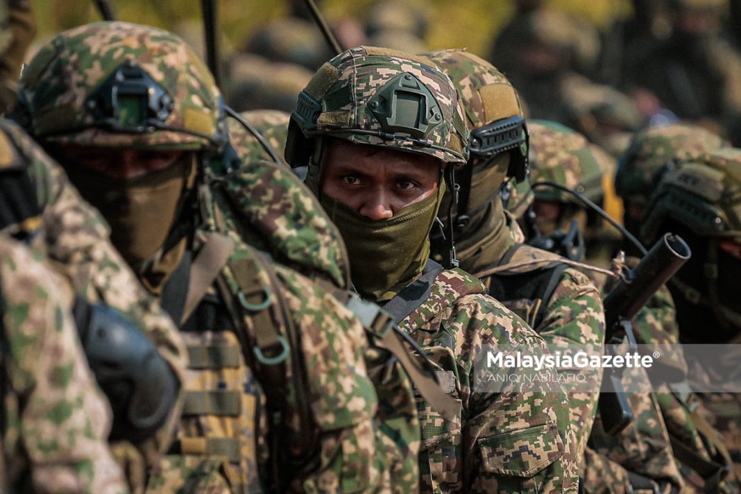 Anggota tentera darat Malaysia menyertai serangan akhir pada Majlis Penutup Eksesais KERIS STRIKE 2025 di FELDA Lawin Selatan, di Lenggong. Foto ANIQ NABILAFIQ ANUAR, 29 JULAI 2025.