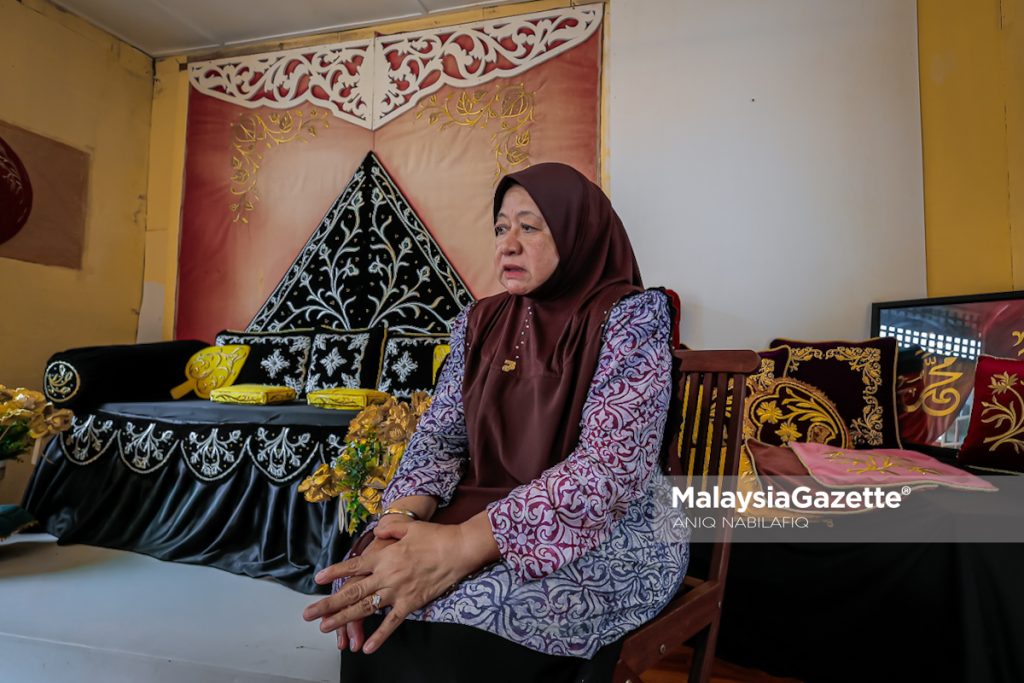 “Bila saya berpindah ke Kampung Padang Changkat saya mengetahui bahawa ada seorang guru mengajar tekatan benang emas jadi saya mengambil keputusan untuk mempelajarinya bagi memenuhi masa lapang.