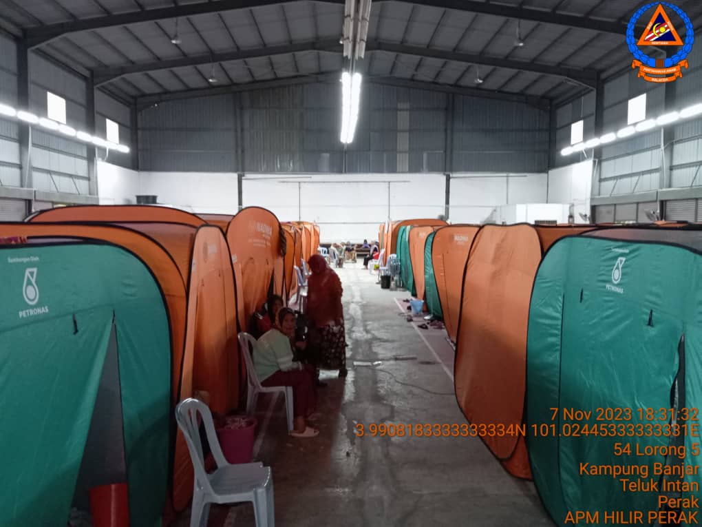 “Seramai 156 mangsa daripada 48 buah keluarga membabitkan 11 buah kampung di Teluk Intan di tempatkan di PPS Dewan Serbaguna Padang Tembak setakat jam 6 petang pada Selasa.