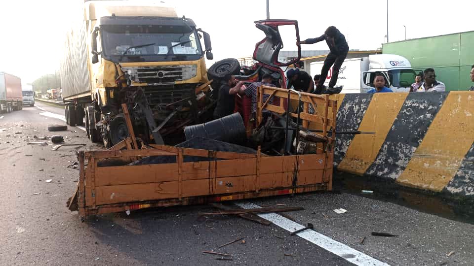 “Siasatan di lokasi mendapati, lori Volvo yang dipandu dari arah selatan ke utara itu dipercayai mengalami masalah brek sebelum melanggar bahagian belakang lori Mitsubishi.