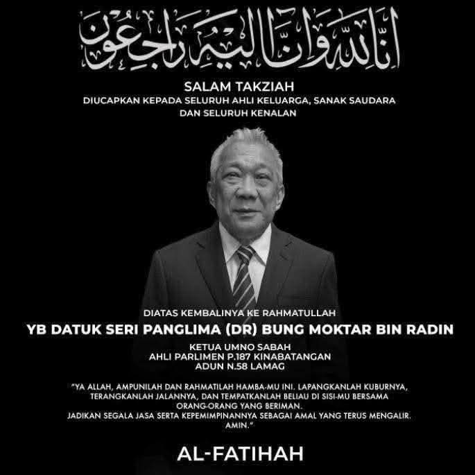 “Terima khabar duka akan pemergian YB Datuk Seri Bung Moktar Bin Radin awal pagi tadi.
