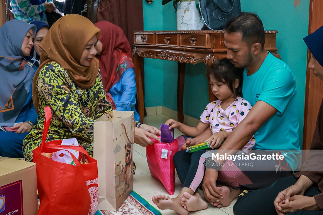 Pada ziarah berkenaan,Noraini turut menyampaikan bantuan wang tunai RM3,000 melalui Skim Pemberian Ehsan Yayasan Kebajikan Negara serta barangan keperluan kepada suami Allahyarhamah, Mohd Azinor Azizan, 40-an.