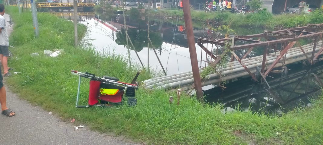 “Setibanya jentera di tempat kejadian, didapati kerusi roda milik mangsa berada di tepi tali air dan mangsa disyaki telah terjatuh ke dalam tali air tersebut.