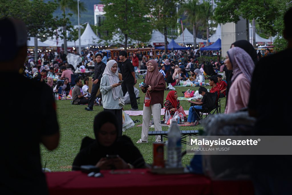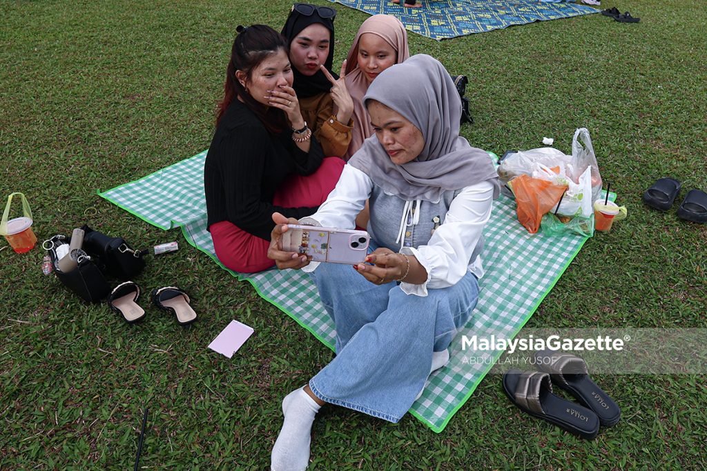 Orang ramai berswafoto ketika mengambil peluang pada cuti hujung minggu bersama keluarga dan kenalan berbuka puasa kawasan padang sekitar Bulatan Sultan Azlan Shah Meru, Ipoh. Foto ABDULLAH YUSOF 01 MARCH 2026.