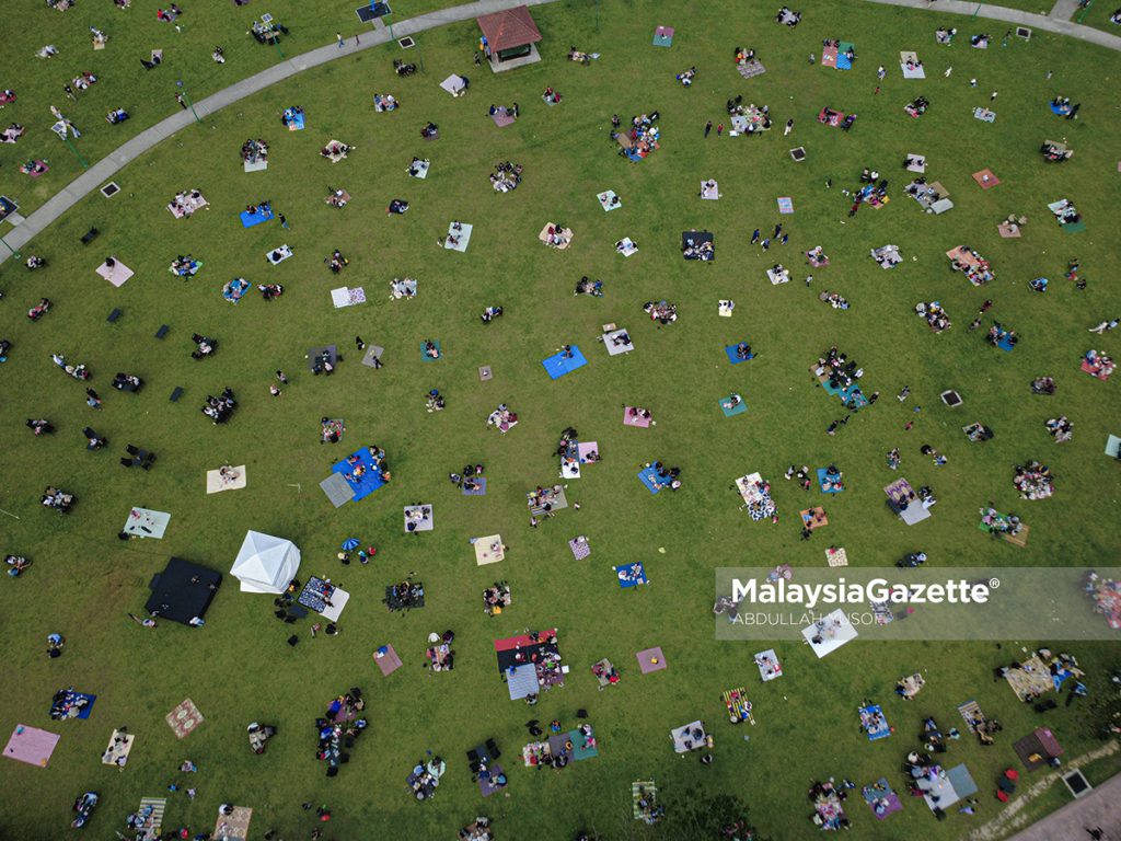 Orang ramai mengambil peluang pada cuti hujung minggu bersama keluarga dan kenalan berbuka puasa kawasan padang sekitar Bulatan Sultan Azlan Shah Meru, Ipoh.