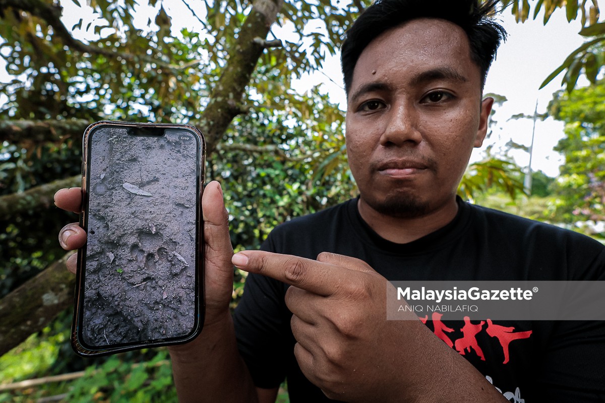 “Tidak lama kemudian saya cuba periksa di lokasi, saya tengok di tanah ada tapak kaki baharu seperti tapak kaki harimau, iaitu satu tapak besar dan satu tapak kecil.