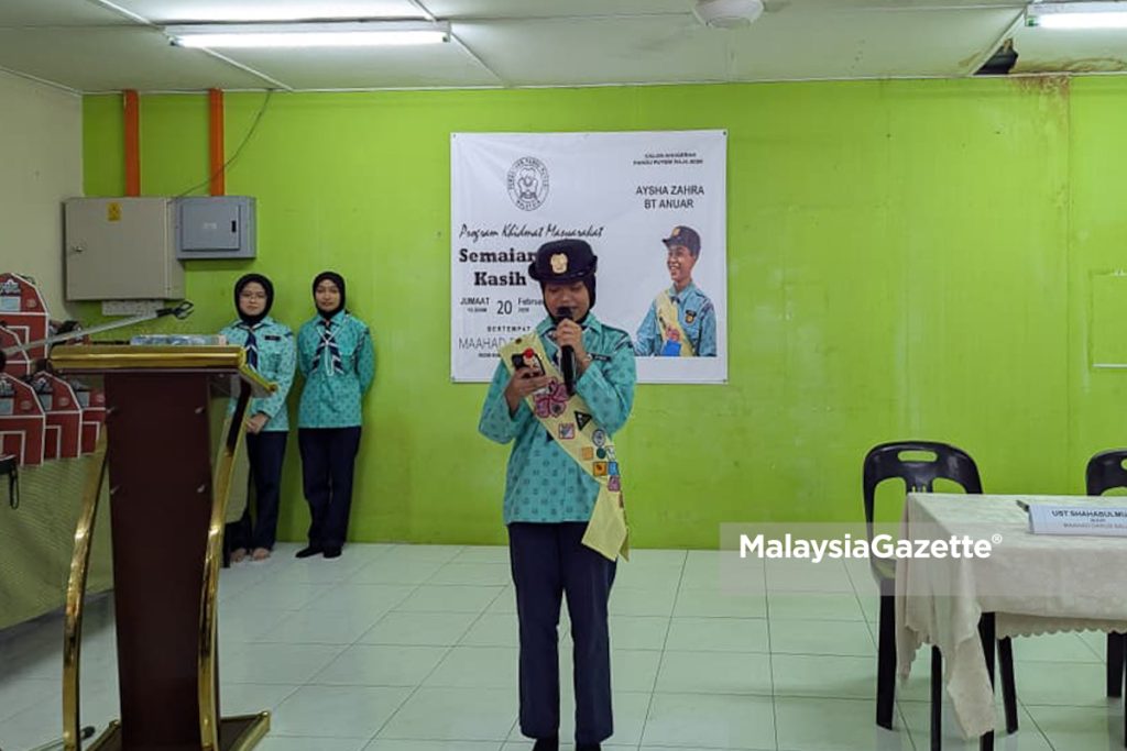 Aysha Zahra berkata, bagi memenuhi syarat menjadi calon Pandu Puteri Raja, dia perlu melakukan projek khidmat masyarakat selama tiga bulan dengan membuat kebaikan serta membawa perubahan kepada komuniti yang disantuninya.