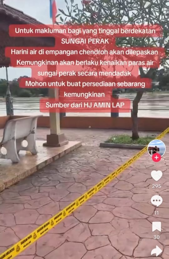 Ia susulan mesej yang sedang tular mengenai pelepasan air dari Empangan Chenderoh dan kenaikan paras air Sungai Perak.