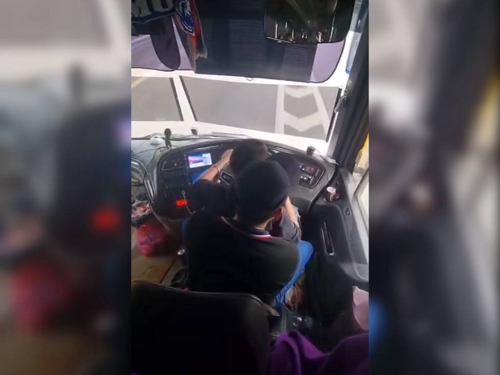 Terdahulu tular di media sosial video berdurasi sekitar sembilan saat memaparkan seorang wanita dilihat memegang stereng sambil duduk di riba pemandu ketika bas sedang bergerak. – MG Perak