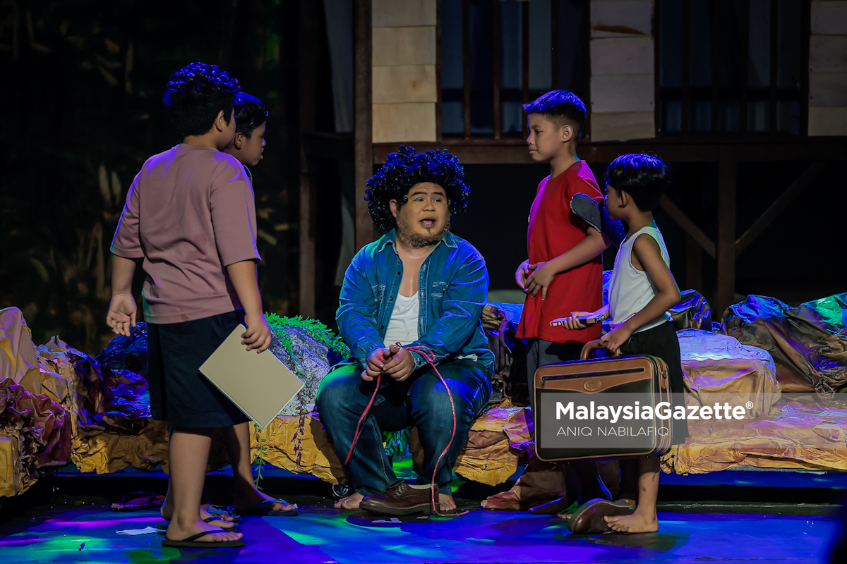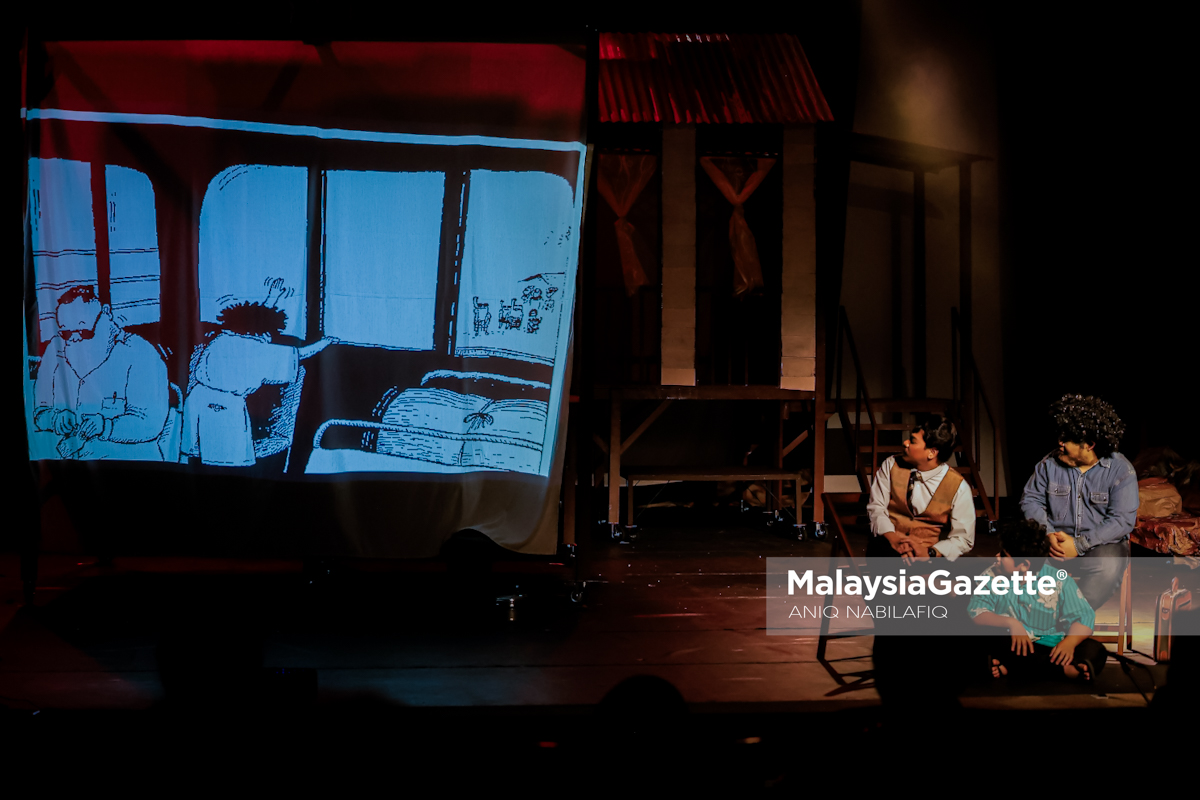 Pelakon cilik, Hadi Mikail membawa watak Lat pada protonton pementasan Teater Seniman Negara Datuk Mohd Nor Khalid (Datuk Lat) ‘Kampung Boy’ di Auditorium Jabatan Kebudayaan dan Kesenian Negara (JKKN) Perak, Ipoh. Foto ANIQ NABILAFIQ ANUAR, 11 NOVEMBER 2025.
