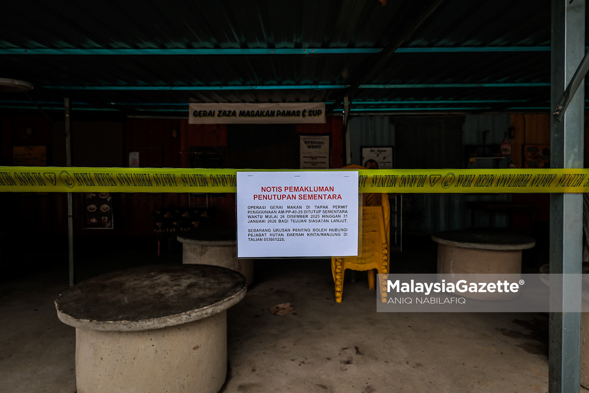 Tinjauan MalaysiaGazette (MG) Perak di lokasi pada Jumaat mendapati notis pemakluman penutupan sementara oleh Pejabat Hutan Daerah Kinta/Manjung turut dilekatkan pada pagar di premis berkeluasan 0.4 hektar itu.