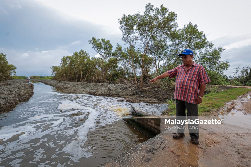 Jabatan Pengairan dan Saliran (JPS) Perak melakukan kerja-kerja pembesaran laluan air bagi meningkatkan keupayaan aliran dan mengurangkan risiko banjir di Daerah Bagan Datuk ketika tinjauan lensa MalaysiaGazette di Kunci Air Tebuk Semani, Bagan Datuk. Foto ANIQ NABILAFIQ ANUAR, 27 DISEMBER 2025.