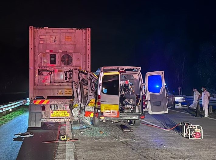 Menurutnya, kejadian berlaku apabila ambulans syarikat swasta dipandu lelaki berusia 41 tahun itu melanggar bahagian belakang sebuah treler.