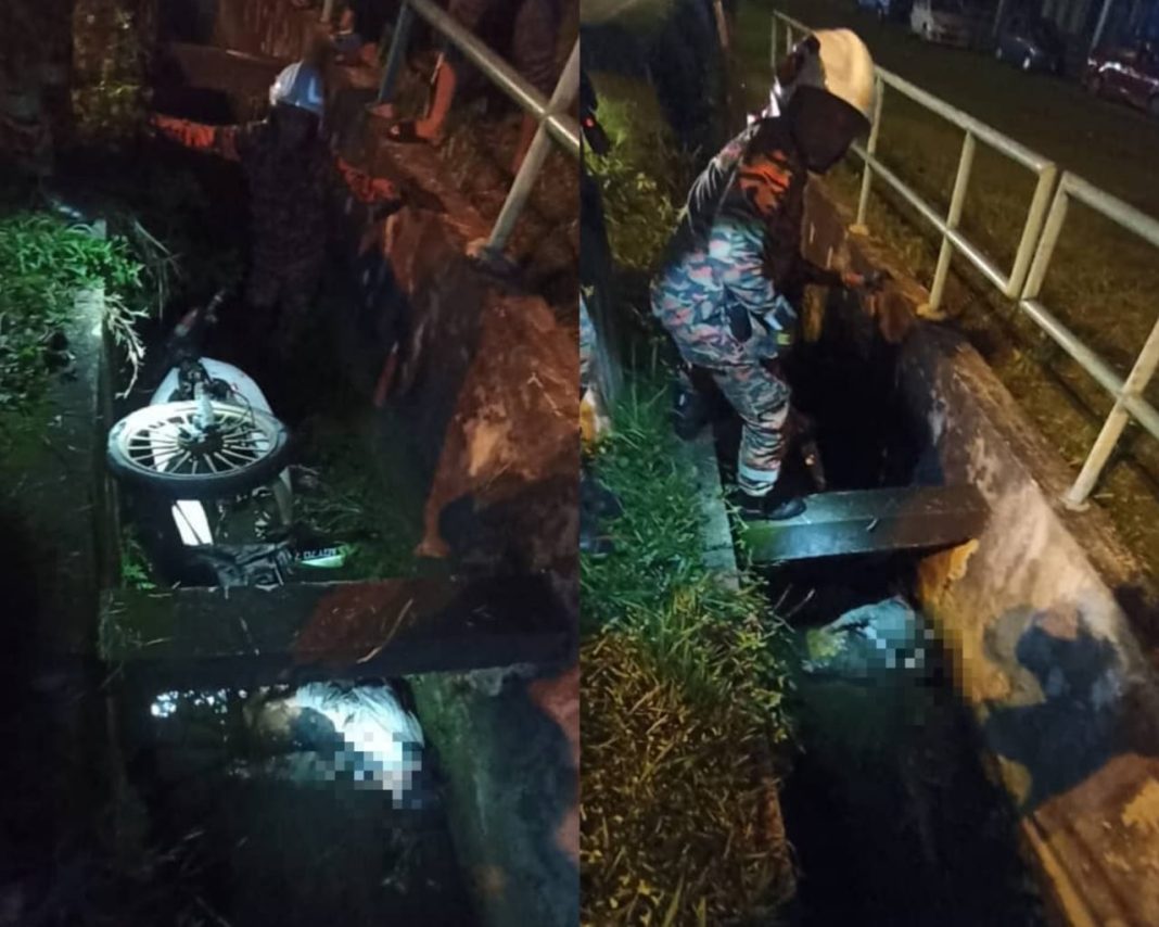 “Anggota bomba dimaklumkan bahawa lelaki yang menunggang motosikal berkenaan terbabas dan jatuh ke dalam longkang.