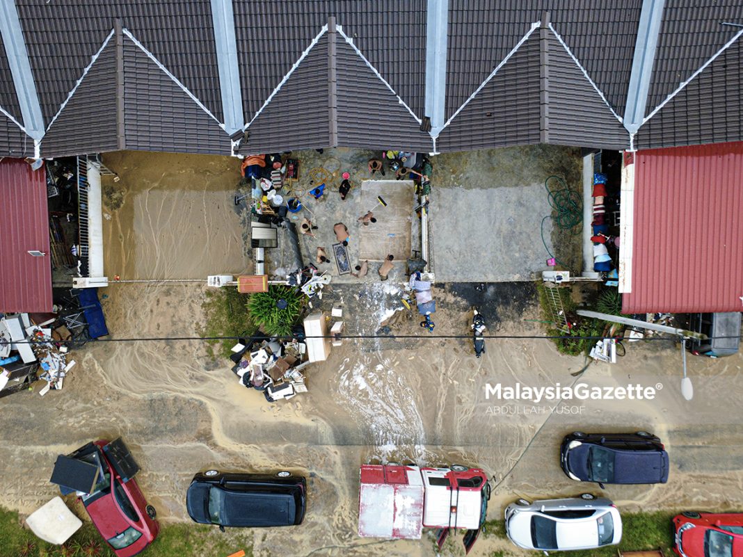 Mangsa banjir giat melakukan kerja-kerja membersihkan rumah masing-masing selepas dilanda banjir kilat sekitar daerah Larut, Matang dan Selama (LMS) di Taman Larah Damai, Kamunting. Foto ABDULLAH YUSOF, 24 OKTOBER 2025.
