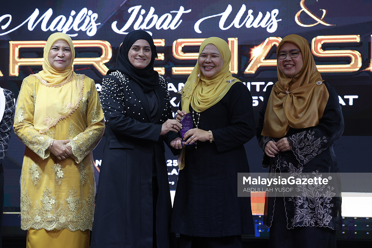 Exco Pembangunan Wanita, Keluarga, Kebajikan Masyarakat, Pembangunan Usahawan dan Koperasi Perak, Datuk Salbiah Mohamed menyampaikan cenderahati pada Majlis Libat Urus dan Apresiasi Pembangunan Wanita, Keluarga dan Kebajikan Masyarakat Negeri Perak di Weil Hotel, Ipoh. Foto ABDULLAH YUSOF, 21 NOVEMBER 2025.