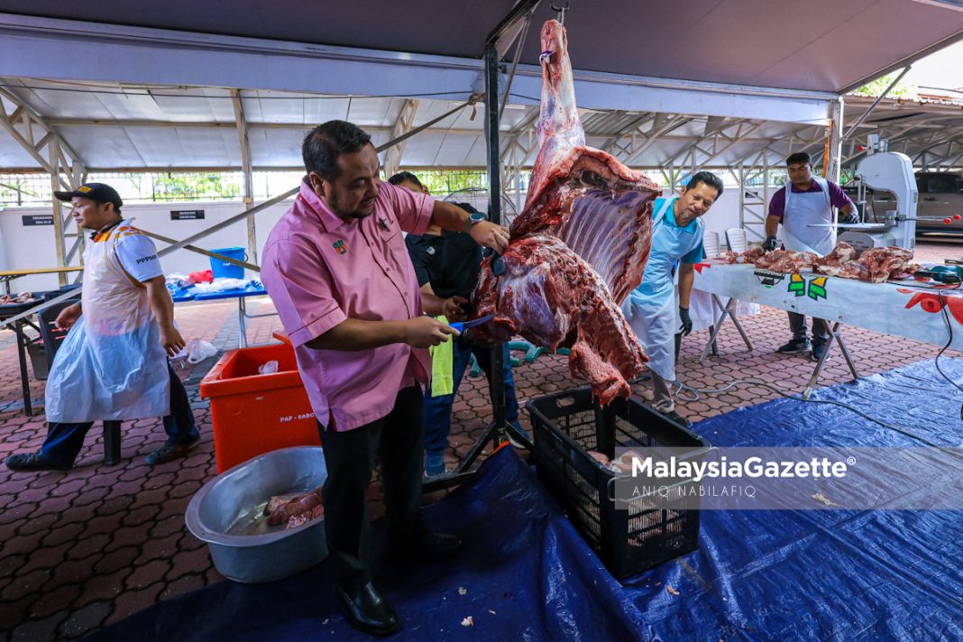 Seorang Kakitangan Perak SADC membuat persediaan membungkus daging lembu ketika tinjauan MG Perak pada Program Jualan Rahmah Aidilfitri di perkarangan Ibu Pejabat Perak SADC, Ipoh, hari ini. Foto ANIQ NABILAFIQ ANUAR, 05 APRIL 2024.