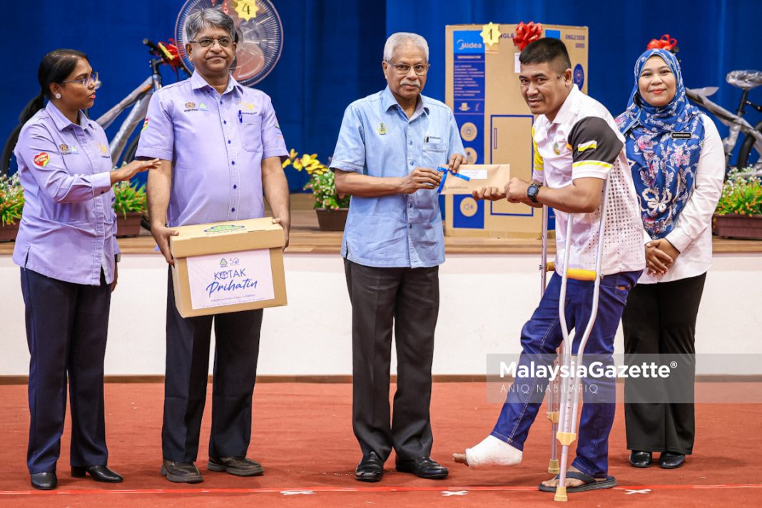 Exco Sumber Manusia, Kesihatan, Hal Ehwal Masyarakat India dan Integrasi Perak, A. Sivanesan ketika hadir pada program Fiesta PERKESO Prihatin bersama Politeknik Bagan Datuk, petang tadi. Foto ANIQ NABILAFIQ ANUAR, 01 JUN 2024.