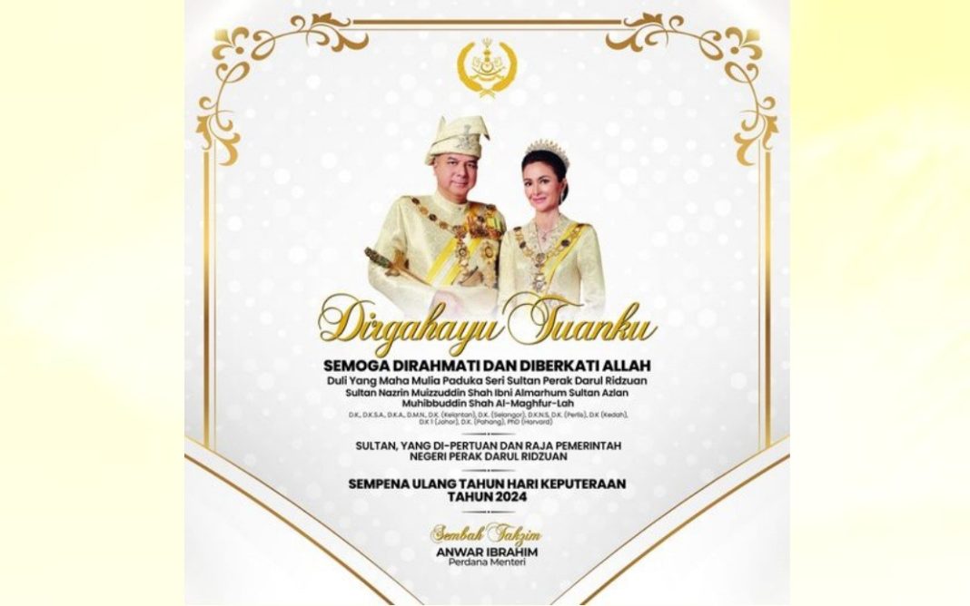 PM Anwar rafak sembah ucapan tahniah Ulang Tahun Keputeraan Sultan Perak