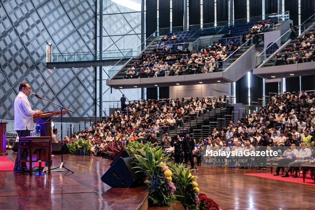 Perdana Menteri, Datuk Seri Anwar Ibrahim berucap pada Program Temu Anwar Bersama Pelajar Universiti Teknologi Petronas (UTP) di Dewan Canselor UTP, Seri Iskandar. Foto ABDULLAH YUSOF, 11 OKTOBER 2025.