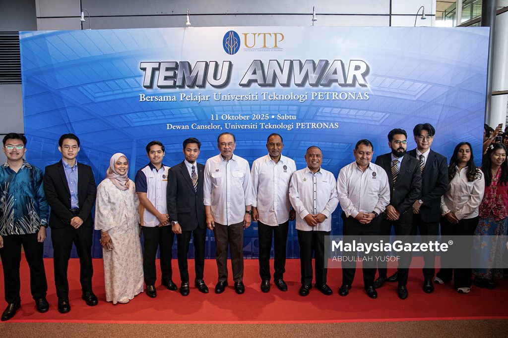 Perdana Menteri, Datuk Seri Anwar Ibrahim bergambar pada Program Temu Anwar Bersama Pelajar Universiti Teknologi Petronas (UTP) di Dewan Canselor UTP, Seri Iskandar. Foto ABDULLAH YUSOF, 11 OKTOBER 2025.