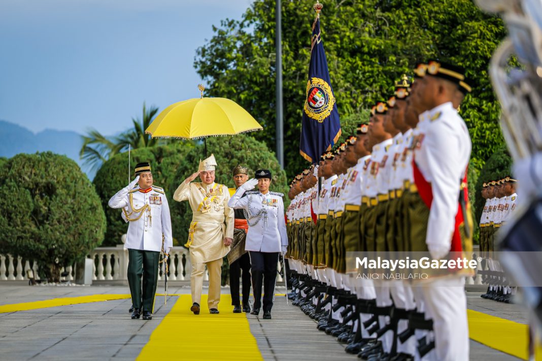 Sultan Perak, Sultan Nazrin Muizzuddin Shah dan Raja Permaisuri Perak, Tuanku Zara Salim berkenan berangkat pada Istiadat Menghadap Sembah Taat Setia dan Penganugerahan Darjah Kebesaran sempena sambutan Ulang Tahun Hari Keputeraan Ke-69 Sultan Perak di Istana Iskandariah, Kuala Kangsar, pada Ahad. Foto ANIQ NABILAFIQ ANUAR 09 NOVEMBER 2025.