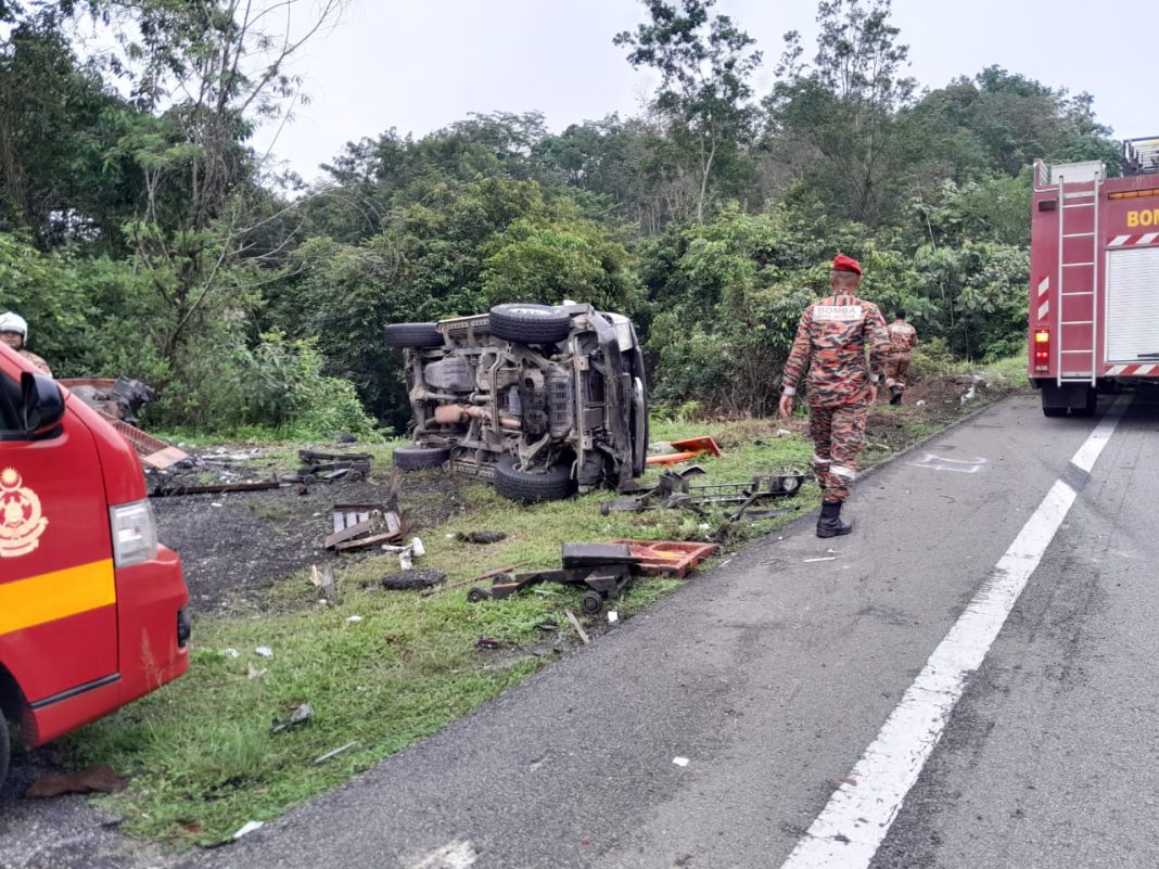 Beliau berkata, kemalangan berkenaan melibatkan masing-masing sebuah lori jenis Mitsubishi, kenderaan utiliti sukan (SUV) jenis Ford Everest dan sebuah treler