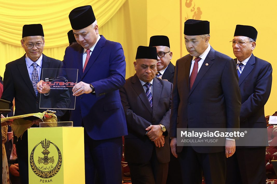 BAGAN DATUK – Sultan Perak, Sultan Nazrin Muizzuddin Shah berkenan berangkat ke Majlis Pemasyhuran Politeknik Maritim Sultan Nazrin Shah (PMSN) di sini, pada Khamis.
