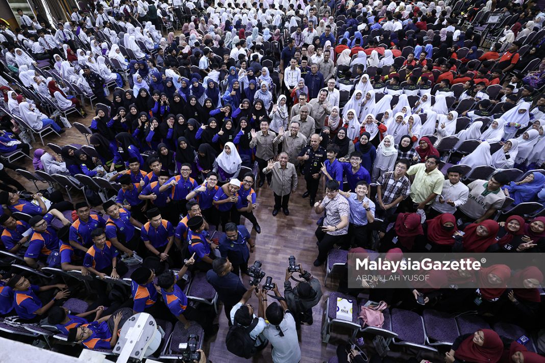 Menteri Besar Perak, Datuk Seri Saarani Mohamad (tengah) bergambar bersama pelajar pada program 'Tanya Cikgu Saarani' bersempena dengan Program Mesra ke Daerah Perak Tengah di Universiti Teknologi MARA (UiTM) Cawangan Perak di Seri Iskandar. Foto ABDULLAH YUSOF, 09 OKTOBER 2023