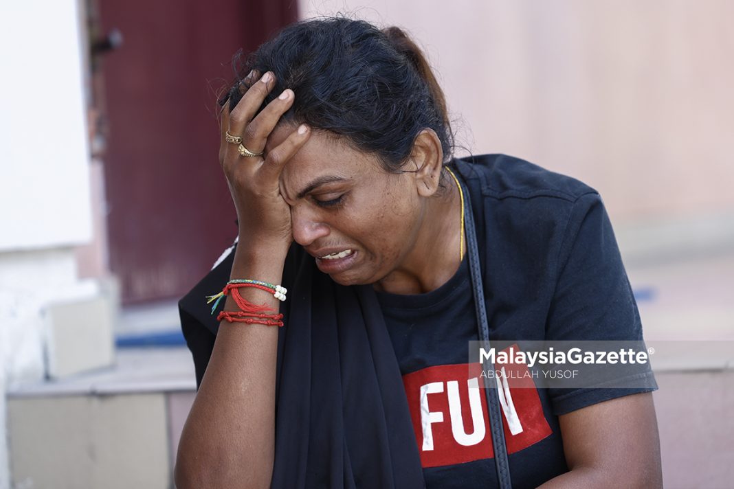 Beliau yang kelihatan sugul ditenangkan ahli keluarga terdekat ketika menanti mayat anak-anak lelakinya di Jabatan Forensik, Hospital Raja Permaisuri Bainun (HRPB), di sini.