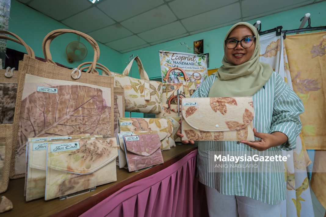 DAUN yang gugur tidak lagi sekadar menjadi ‘sisa alam’, sebaliknya mampu diolah menjadi medium seni cetakan fabrik eco-print bernilai tinggi menerusi penghasilan produk kraf mesra alam yang unik dan eksklusif.
